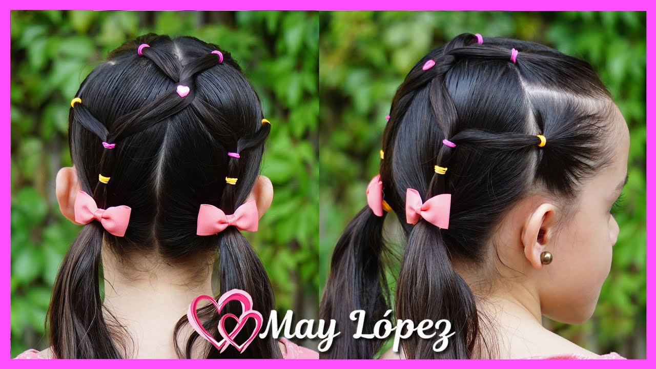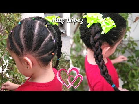 PEINADO PARA NIÑAS CON LIGAS DE COLORES Y TRENZA EN 3D | Peinados faciles para niñas | May Lopez