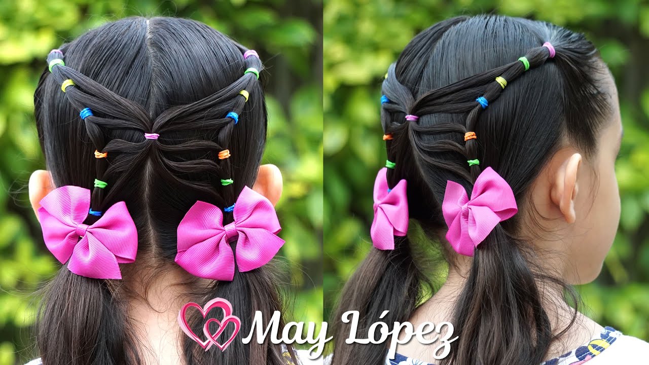 Este peinado para niñas tambien puede ser con tema navideño si cambiaras el color de las ligas elasticos cauchitos (como tú los conozcas) a color rojo y pones moños con tema navideño, es fácil ...